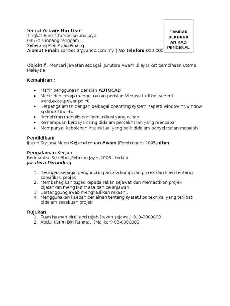 Amiruddin Bin Ahmad Tarmizi Kelayakan- Ijazah Sarjana Muda Kejuruteraan Awam Kepujian Jurutera a Bertanggungjawab merancang penjadualan menjalankan dan menyelaras aspek teknikal dan pengurusan projek. Bahasa Inggeris 3761 Pengajian Kejuruteraan Awam. Selari dengan perkembangan pesat teknologi digital Kementerian Pendidikan Malaysia akan menggunakan teknologi dan kandungan digital dalam dalam bidang pendidikan.
